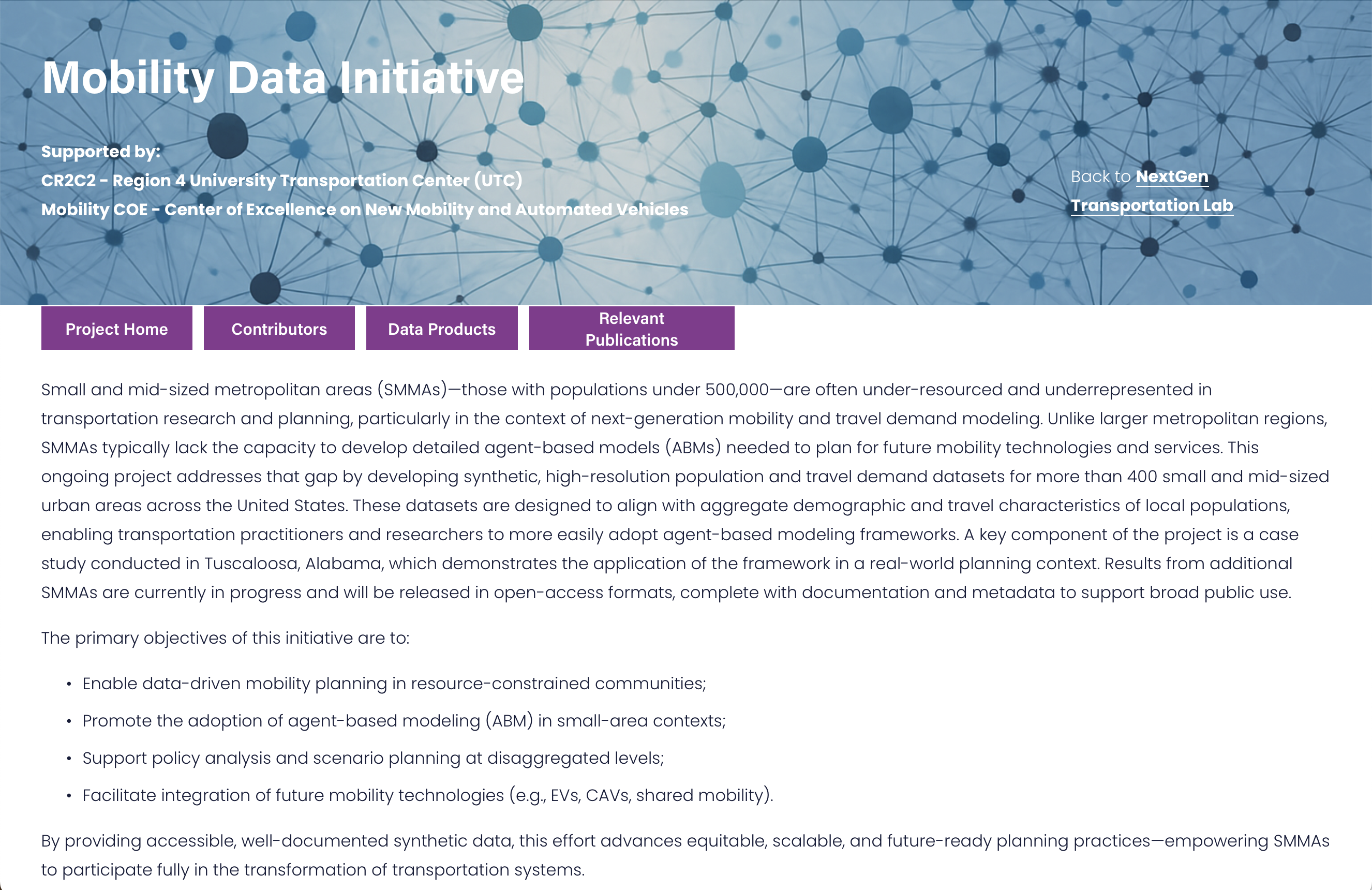 - Data Strategy: Exploring data requirements for analyzing system impacts of new mobility technologies and services.